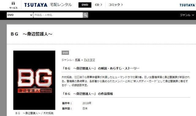 TSUTAYAのネットレンタルで2018年の「BG~身辺警護人~」を1話~最終回まで全話無料視聴できますよ!