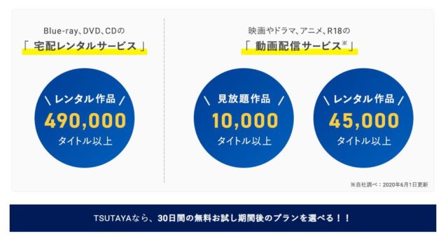 また、後ほど詳しく紹介しますがTSUTAYA TVに登録すると、TSUTAYAのネットレンタルも無料で利用可能!
