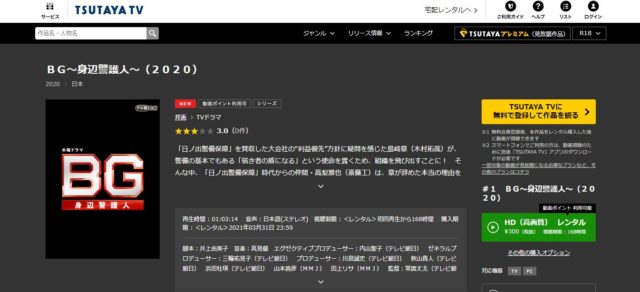 その点、最初にお伝えした「TSUTAYA TV」は登録後とすぐに1100円分のポイントがもらえ、1話330円かかる「BG~身辺警護人~」の動画を無料で見ることができます。