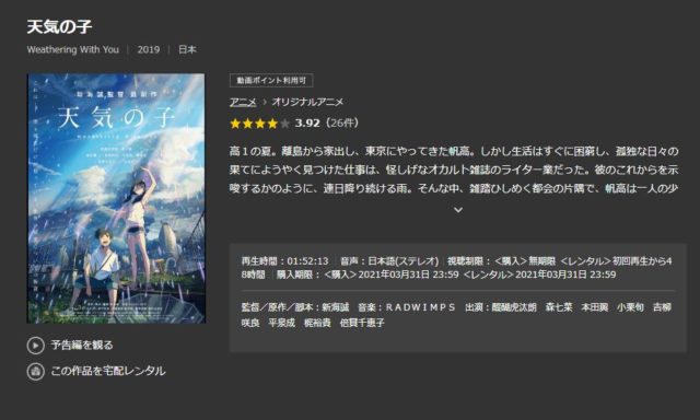 - ネットレンタルのTSUTAYA DISCASも無料で利用できる