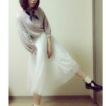 白いワンピースにグレーのレギンスを合わせて、とても涼しげな雰囲気が漂っていますね。